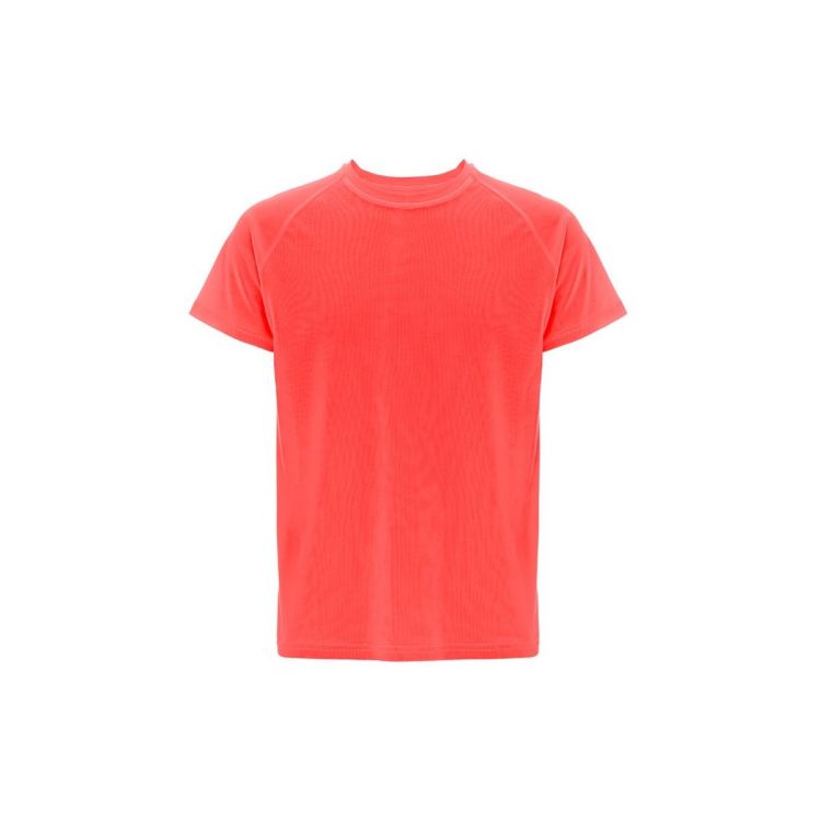 Camiseta técnica adulto de poliéster de manga corta (150g/m²). Tallas: XS, S, M, L, XL, XXL. Producto en color naranja oscuro, tamaño S