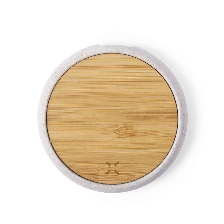 Cargador inalámbrico de diseño circular con superficie de carga en bambú y carcasa en caña de trigo, para así fomentar la utilización de materias primas naturales y reducir las emisiones contaminantes. Indicador led, con cable de carga micro USB incluido y compatible con dispositivos equipados con tecnología de carga inalámbrica. Protección de seguridad para evitar sobrecalentamiento, sobrecarga y cortocircuito. Presentado en atractiva caja de diseño nature. (color natural)