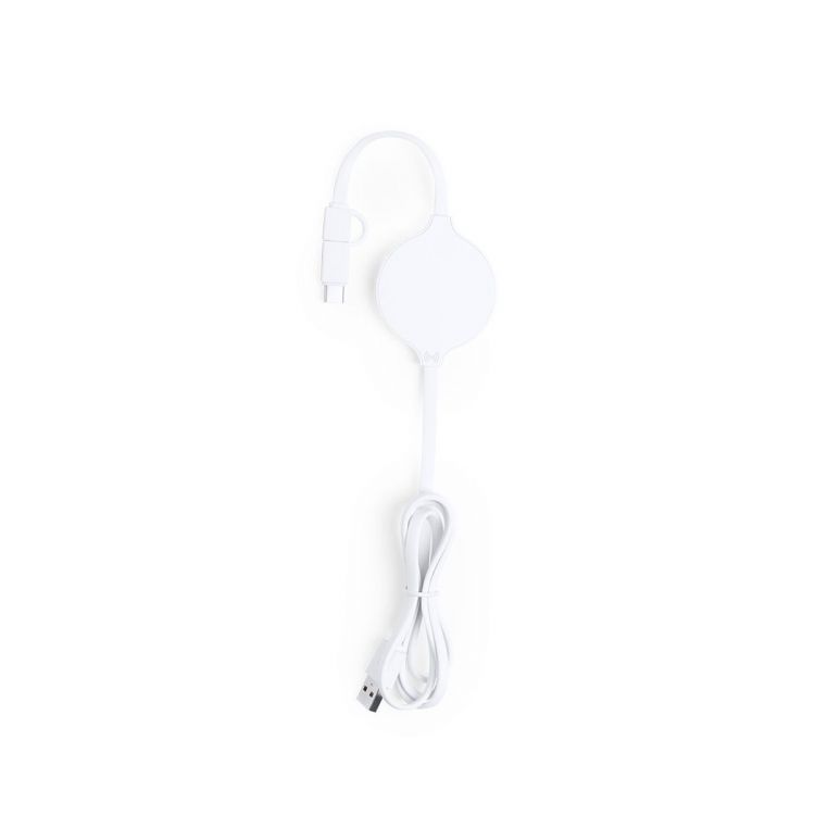 Cargador inalámbrico de diseño ultra compacto en diseño monocolor blanco. Conexión dual micro USB y Lightning, con adaptador Tipo C y luz indicadora de carga. Compatible con dispositivos equipados con tecnología de carga inalámbrica. (color blanco)