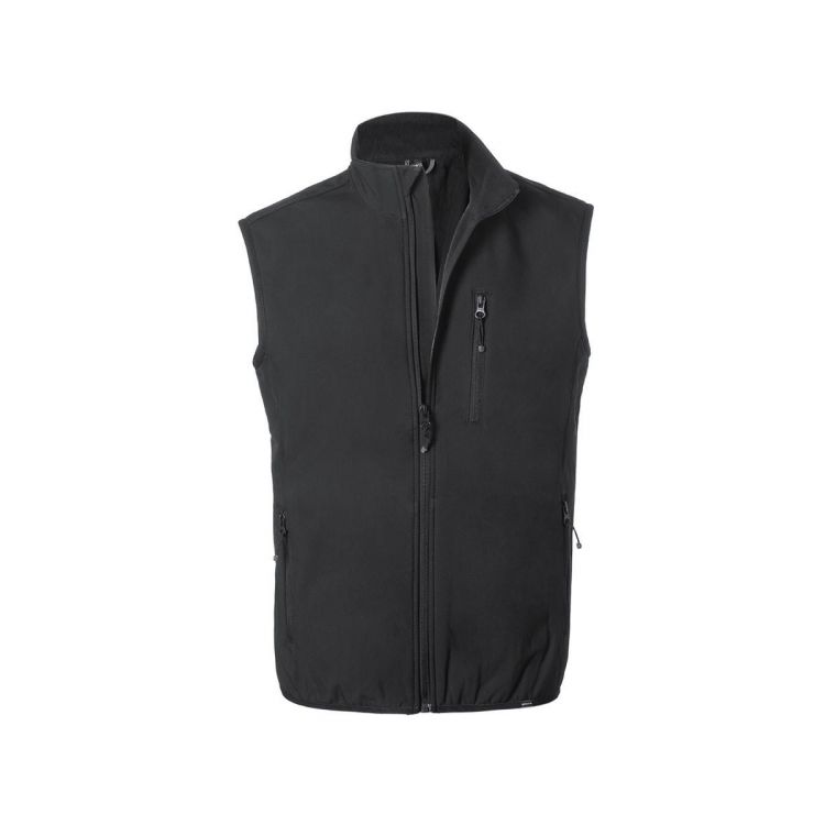 Chaleco impermeable y transpirable en combinación de materiales RPET, elaborados a partir de plástico reciclado, para así fomentar la reutilización de residuos plásticos y contribuir a la sostenibilidad del planeta: exterior en soft shell y elastano de 300g/m2 con interior en 100% poliéster microfleece. Con distintivo eco en dobladillo inferior de la prenda. Resistente al viento y al agua con cierre principal y bolsillos frontal en pecho y laterales de cremallera invisible y tiradores a juego. Disponible en variada gama de colores y en tallas S, M, L, XL, XXL.