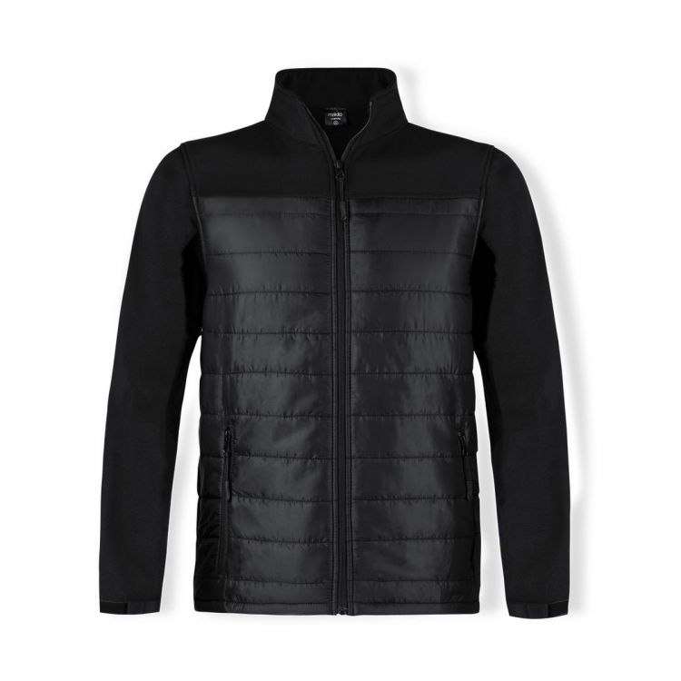 Chaqueta impermeable y transpirable en combinación de materiales soft shell y poliéster. De elegante construcción en color negro, con cierre de cremallera y bolsillos laterales de cremallera con tiradores para fácil apertura. Puños ajustables y disponible en tallas S, M, L, XL, XXL.