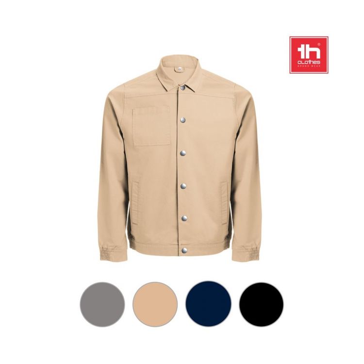 Chaqueta 98% algodón y 2% elastano (240 g/m²). De corte moderno, contiene 2 pinzas en la espalda y elástico en muñeca y cintura. Cierre realizado por botones a presión. Incluye 2 bolsillos traseros y 1 bolsillo en el pecho. Tallas: S, M, L, XL, XXL, 3XL