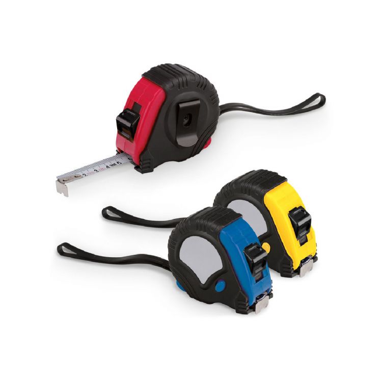 Cinta métrica de 3 m hecha en ABS. Incluye freno, clip metálico y correa de sujeción. Suministrado en una caja de regalo. 60 x 60 x 35 mm