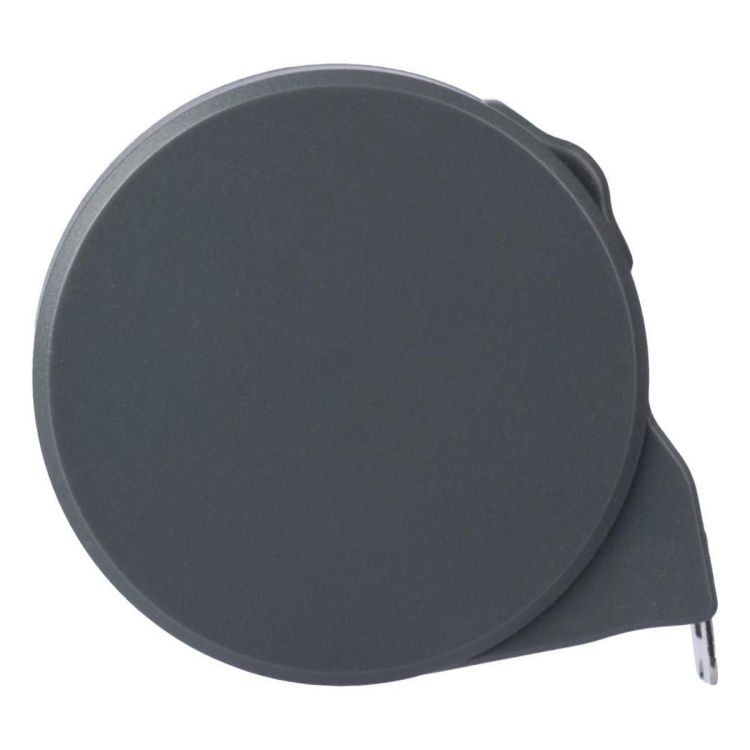 Cinta métrica de ABS reciclada (3 metros) con una escala en centímetros y pulgadas. Incluye el logotipo grabado de ABS reciclado. Presentada en una caja de cartón marrón.
