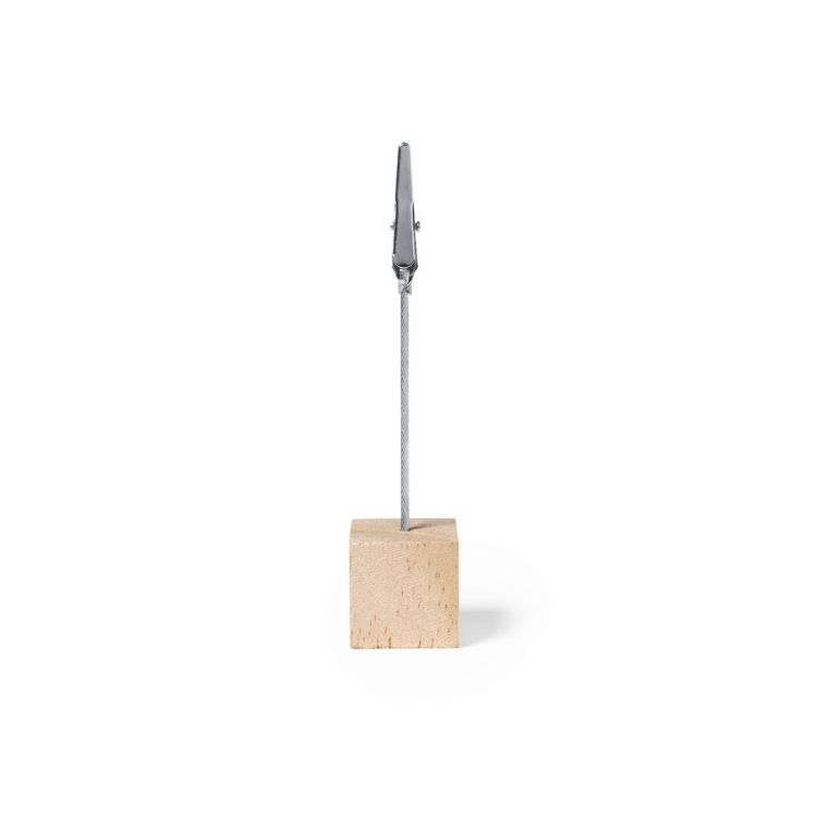 Clip de línea nature, con resistente base fabricada en madera de pino natural. Con poste y pinza metálicos para una firme sujeción de tarjetas, notas, fotos… (color natural)