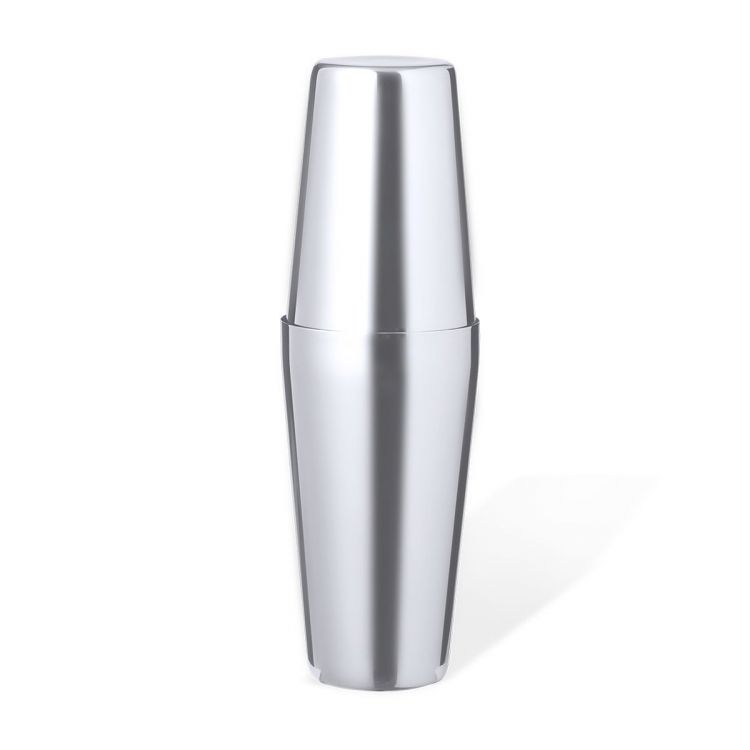 Coctelera de 500 ml fabricada en acero inox. Fabulosa coctelera compuesta de dos vasos en acero inox que encajan entre sí para un perfecto sellado, para preparar bebidas refrescantes. Presentada en caja de diseño kraft. (color plata)