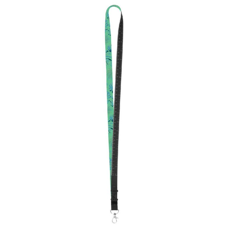 Cordón de poliéster personalizado de 15 mm de ancho con cinta métrica de 100 cm y mosquetón metálico. Con gráficos impresos por sublimación en una cara. Cantidad mínima: 100 unidades