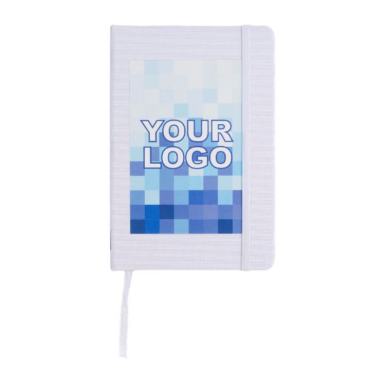 Libreta de rPET y PU (aprox A5) con elástico de cierre y marcador de cinta. Tiene 80 páginas lineadas de papel de 70 g / m2.