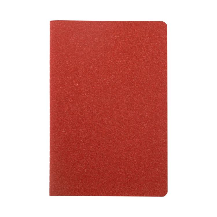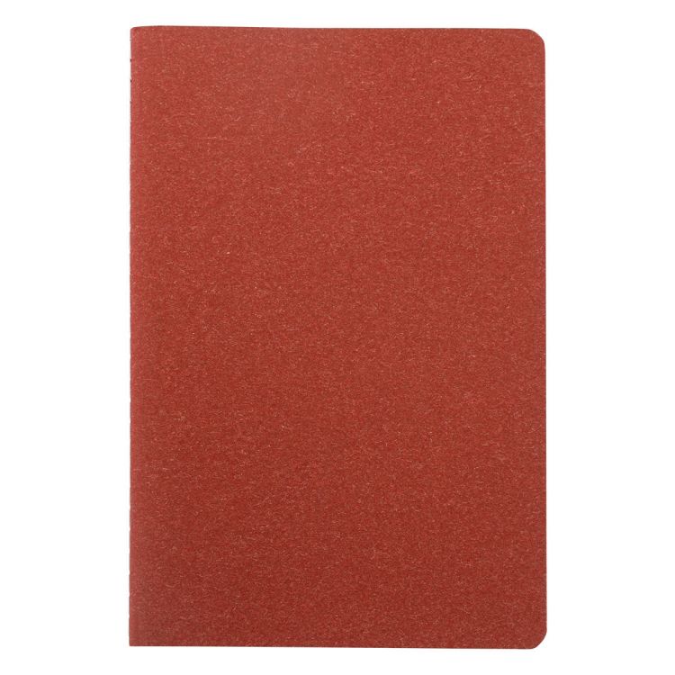 Cuaderno forrado de papel reciclado con cubierta cosida y 60 hojas rayadas en papel kraft reciclado. Tamaño A5.