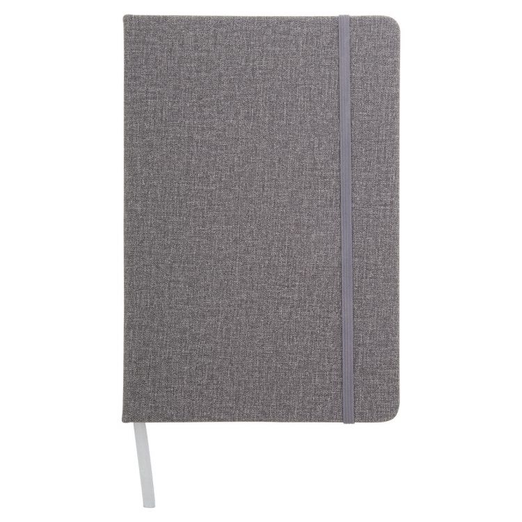 Cuaderno forrado en piel de PU texturizada con correa de caucho y 80 hojas rayadas. Tamaño A5