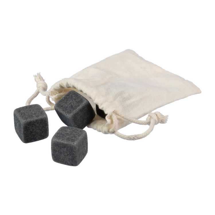 Set de 4 cubitos de piedra natural reutilizables. Guardados en el congelador, estarán siempre listos. Presentados en una bolsa de algodón con cordón.