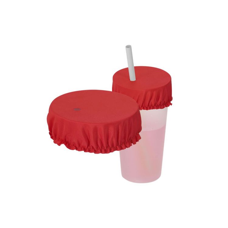 Cubrevasos fabricado en material flexible de poliéster, diseñado para adaptarse a todo tipo de vasos. Incluye un agujero para pajita.Reutilizable y fácil de lavar, es una solución versátil para proteger bebidas.