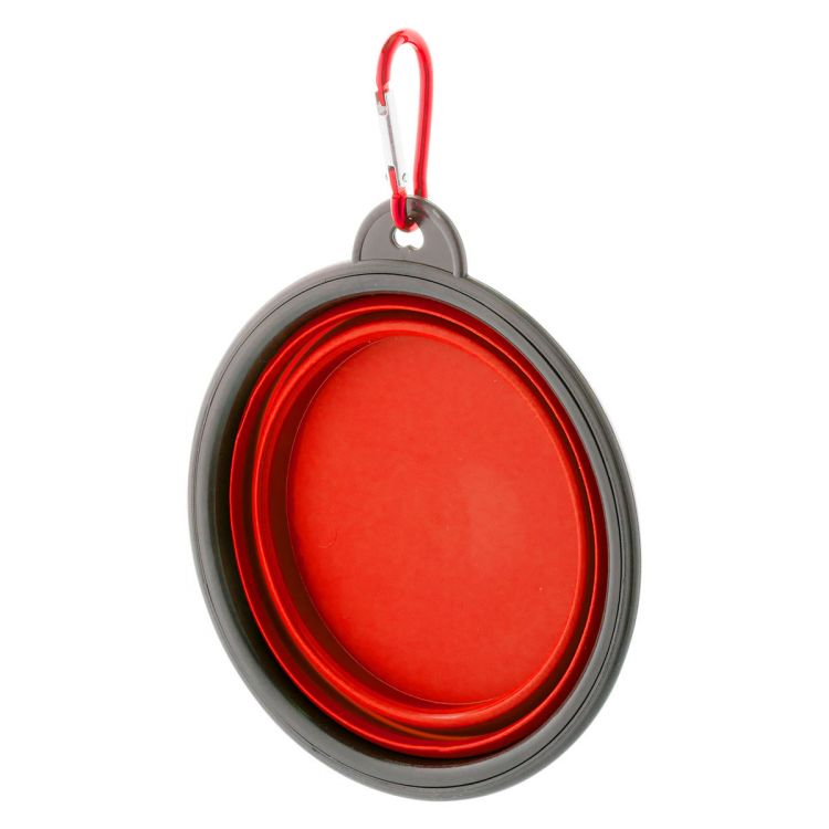Comedero plegable para perros en material TPR con mosquetón del mismo color, 450 ml.