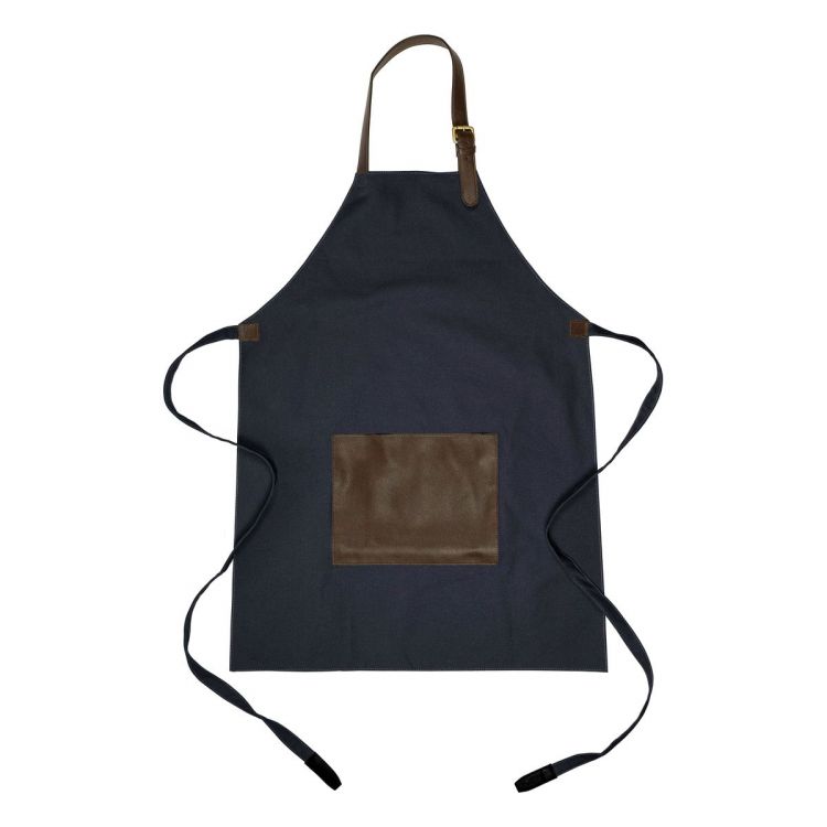 Delantal de lona (450 g/m2) con bolsillo delantero de PU rPET y correa ajustable para el cuello. Repelente al agua.