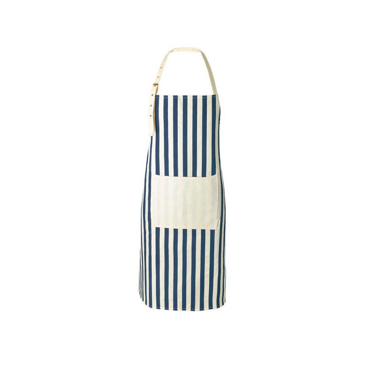 Delantal de línea nature fabricado en material 100% algodón orgánico, cultivado usando métodos sostenibles, sin insecticidas, fertilizante u otros productos químicos, favoreciendo así el cuidado del medio ambiente. De innovador diseño a rayas verticales, con bolsillo frontal en color natural y de corte por debajo de la rodilla. Ajustable, con cintas en cuello y cintura. Distintivo algodón orgánico en etiqueta.