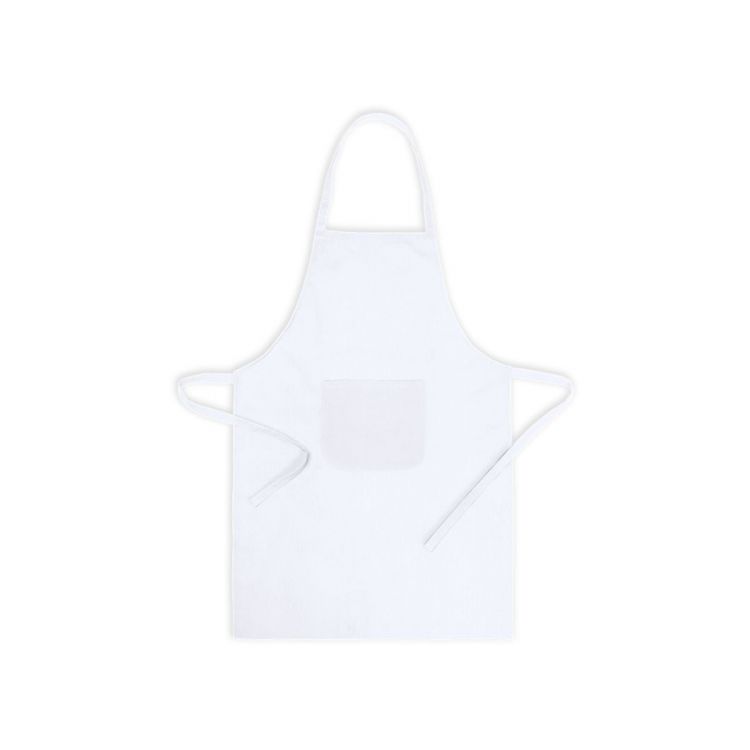 Delantal fabricado en tejido TC, combinación de algodón y poliéster. En el frontal incluye un práctico bolsillo, con cordones ajustables en la cintura y corte por debajo de la rodilla. Disponible en amplia gama de colores.