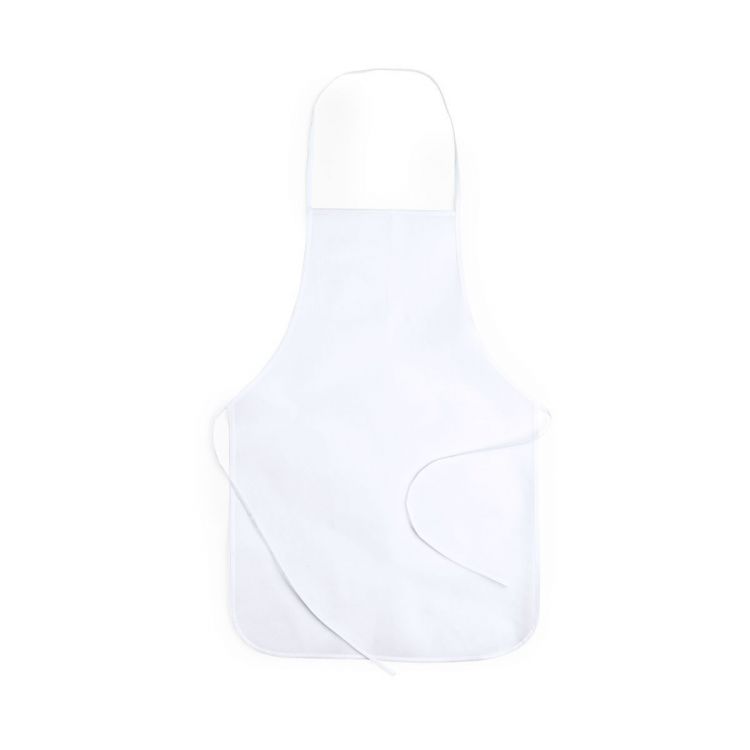Delantal especialmente diseñado para sublimación en non-woven de 80g/m2. Amplia superficie de marcaje 100% personalizable y cintas de ajuste a juego. (color blanco)