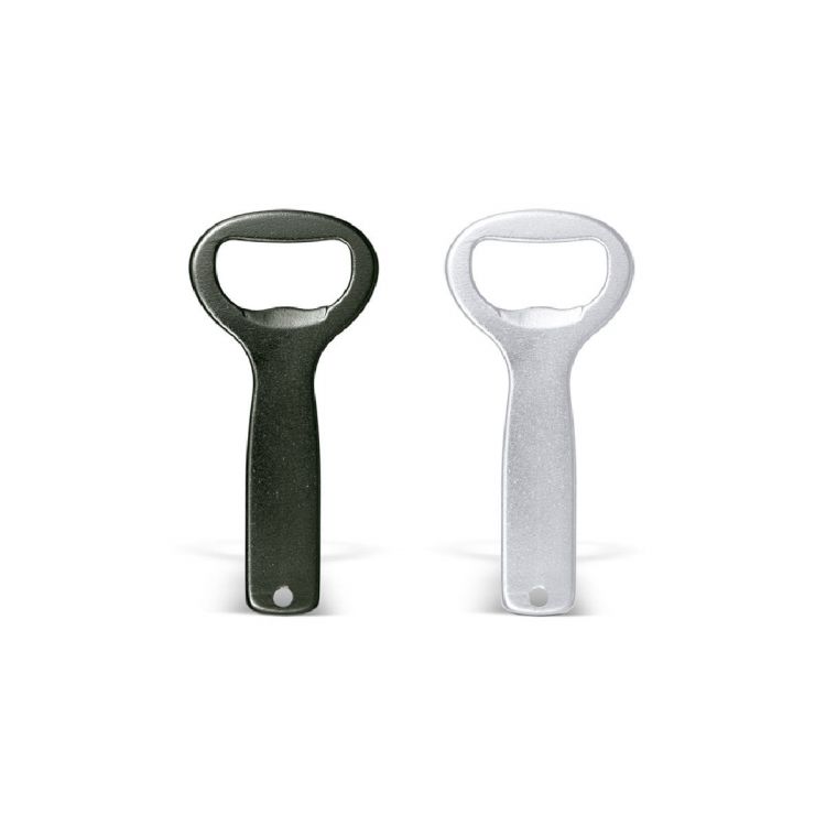 Descapsulador de aluminio con orificio en la punta para colgar. 39 x 83 x 4 mm