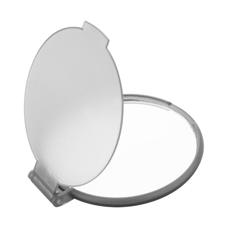 Espejo de bolsillo redondo en estuche de PS reciclado translúcido.
