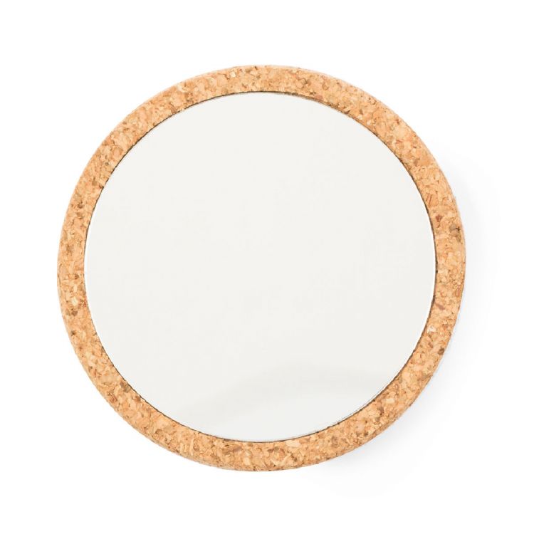 Espejo 1X fabricado en corcho. Práctico espejo portátil recubierto de suave corcho y presentado en una caja individual diseño kraft. (color natural)