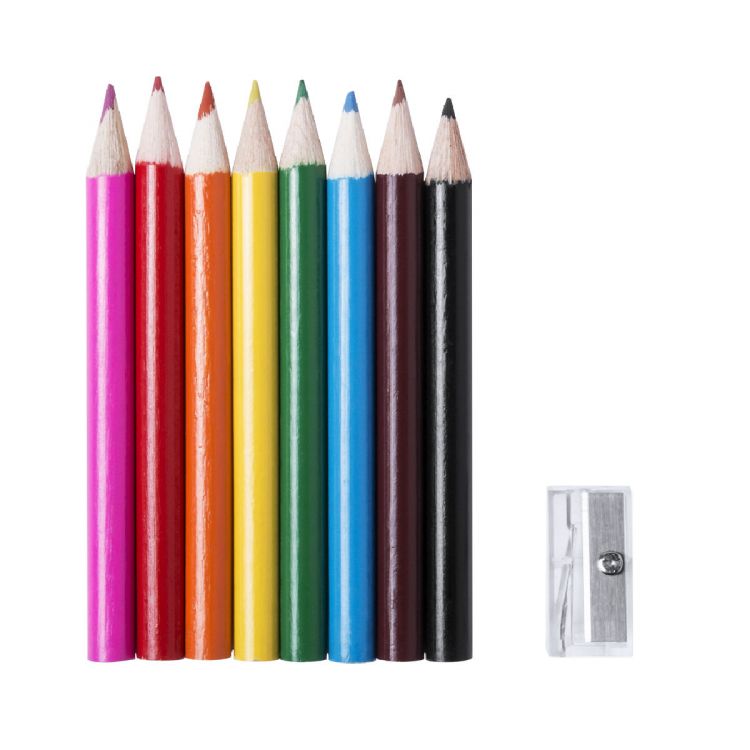 Estuche fabricado en poliéster 420D RPET con cierre de cremallera y práctico enganche en mosquetón. Distintivo RPET en etiqueta. Incluye:- 8 lápices de madera en diferentes colores (negro, rojo, azul claro, amarillo, verde, naranja, rosa y marrón)- Sacapuntas transparenteEl material RPET se elabora a partir de plástico reciclado, para así fomentar la reutilización de residuos plásticos y ayudar a la sostenibilidad del planeta.