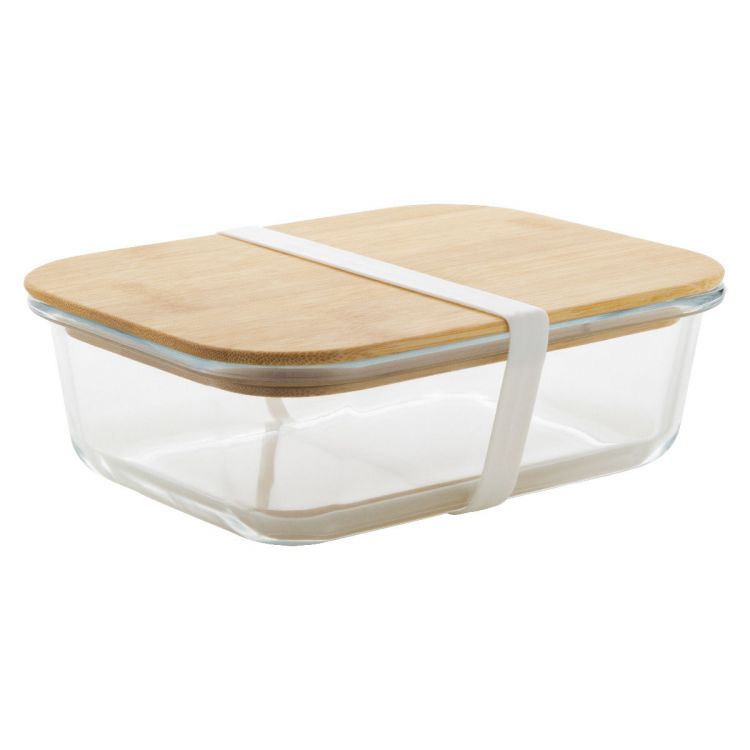 Fiambrera de cristal con tapa de bambú natural y correa de silicona, 800 ml