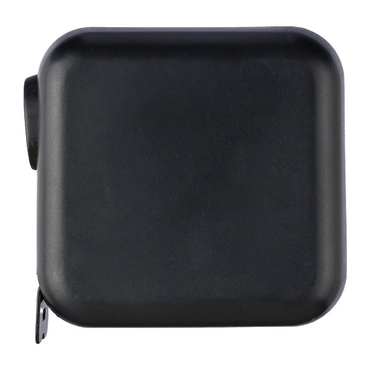 Cinta métrica de ABS (5 metros). Cinta fabricada en metal (19 mm). Ensamblado por ultrasonidos (sin tornillos). Incluye pulsador con bloqueo. Sistema métrico en centímetros y pulgadas. Presentada en una caja de cartón marrón.