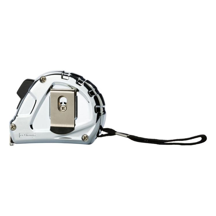 Flexómetro de 3 metros, de plástico brillante con freno y clip. Sistema métrico en centímetros.