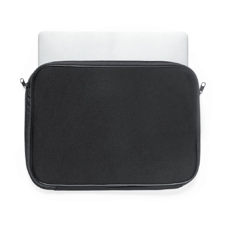 Funda para ordenador portátil, fabricada en resistente soft shell. En elegante color negro, con interior acolchado. Cierre de cremallera a juego con doble tirador. Para ordenador portátil o tablet de hasta 13 pulgadas. (color negro)