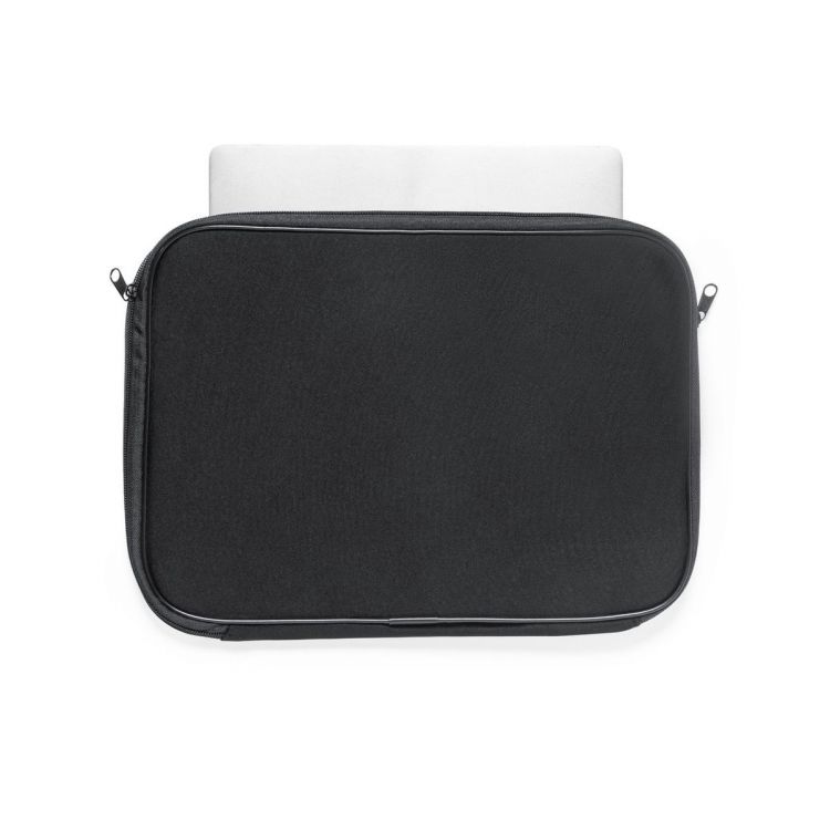 Funda para ordenador portátil, fabricada en resistente soft shell. En elegante color negro, con interior acolchado. Cierre de cremallera a juego con doble tirador. Para ordenador portátil o tablet de hasta 15 pulgadas. (color negro)