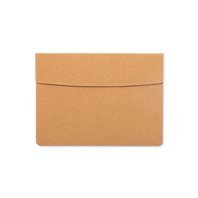 Resistente funda para ordenador portátil de calidad premium fabricada en corcho, favoreciendo el uso de materiales naturales. Compartimento principal con cierre magnético de solapa e interior acolchado. Para ordenador portátil o tablet de hasta 14 pulgadas. (color natural)