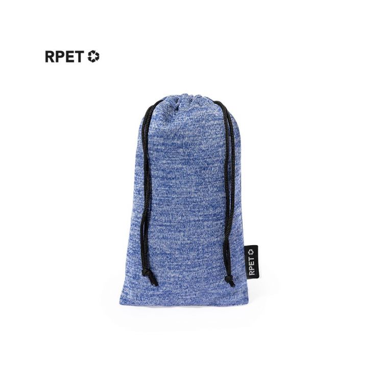 Funda para gafas en suave microfibra RPET y amplia gama de divertidos colores, con cordones autocierre. Con logotipo en etiqueta. El material RPET se elabora a partir de plástico reciclado, para así fomentar la reutilización de residuos plásticos y ayudar a la sostenibilidad del planeta.
