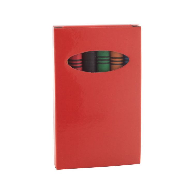 Ceras de colores recubiertas de papel (6 unidades) en caja de papel de colores.