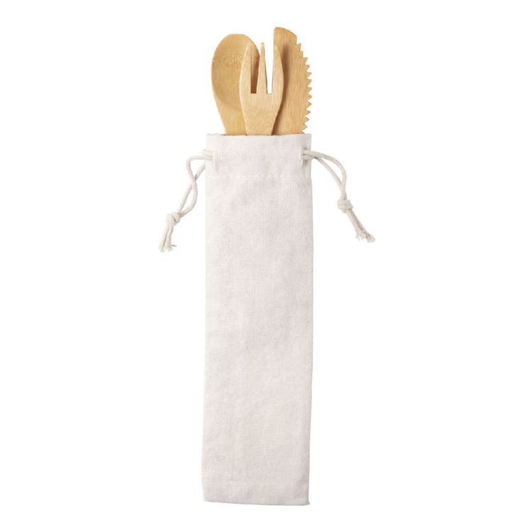 Juego de cubiertos de bambú de 3 piezas en bolsa de algodón