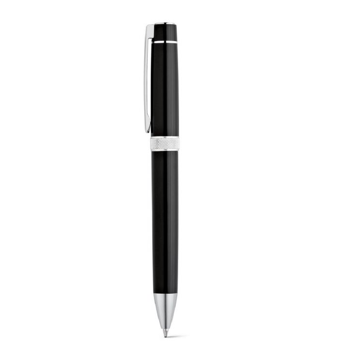 Set de roller y bolígrafo de metal con mecanismo de giro y clip. Tinta negra. Se envía en una caja de regalo acolchada. Bolígrafo: ø13 x 132 mm | Roller: ø13 x 135 mm | Estuche: 171 x 71 x 31 mm. Producto en color negro