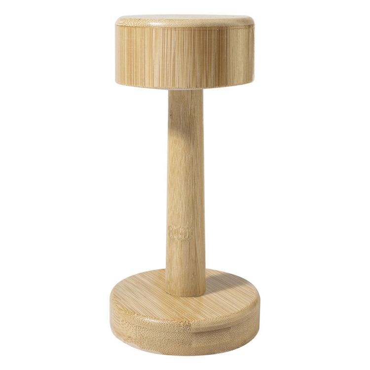 Lámpara de bambú de sobremesa con 24 LED y batería recargable USB de 800 mAh. Con modos de luz cálida, natural y fría. Incluye cable cargador USB