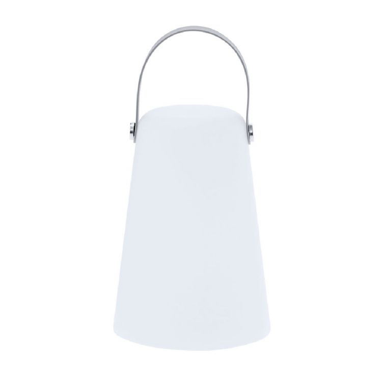 Lámpara en PE de color blanco. Incluye asa superior de suave silicona en tono gris, que facilita su transporte y añade un toque moderno al diseño. Equipada con 4 LEDs , proporciona una luz uniforme y eficiente, tanto para interiores como exteriores. Funciona con 3 pilas AA (no incluidas). Dispone de botón de encendido/apagado. (color blanco)