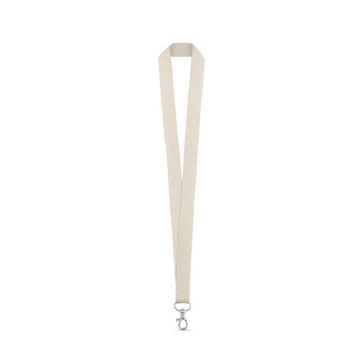 Lanyard de algodón 100% con mosquetón de metal. Fabricado en Europa. 20 x 480 mm. Producto en color natural
