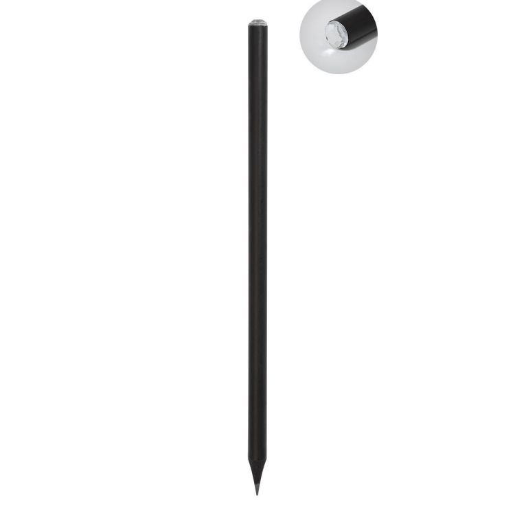 Lápiz negro de madera con decoración de gemas acrílicas. HB con punta, de color blanco