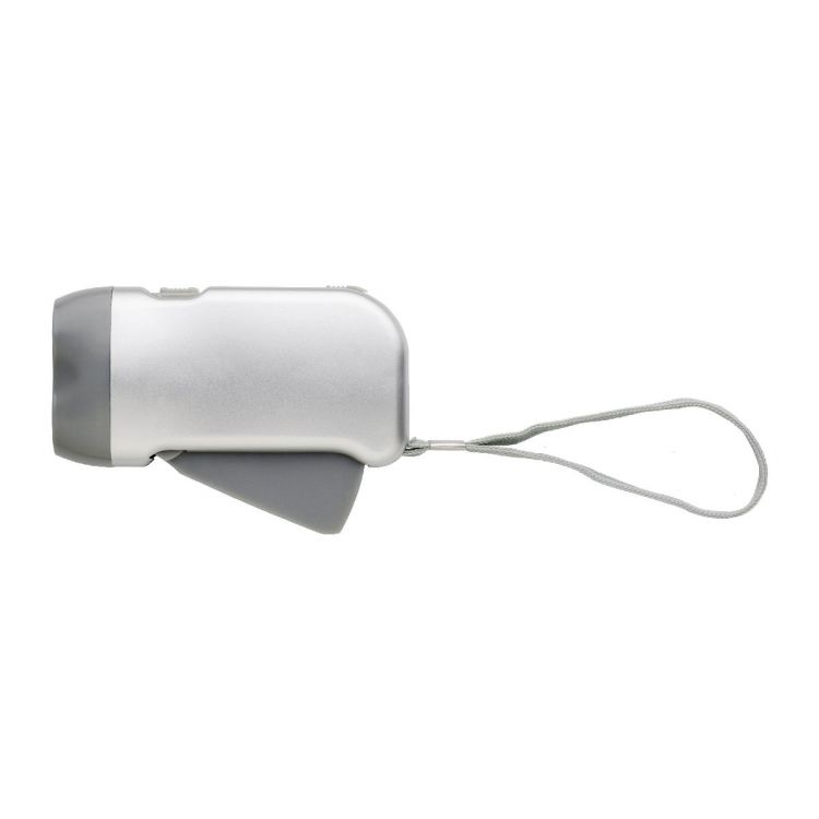 Linterna de ABS, dinamo y 2 luces LED. También puede usarse con pilas (incluidas).