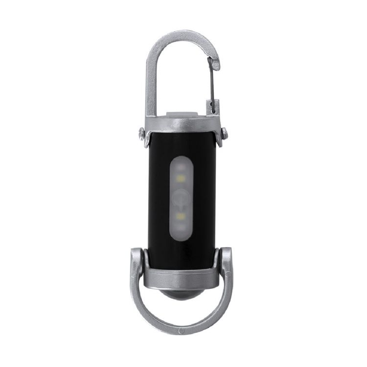 Linterna fabricada en ABS con mosquetón de transporte. 4 LEDs, sistema de encendido de botón y 8 luces COB. 7 posiciones de luz fija e intermitente. Práctica asa de transporte en parte inferior. Batería recargable de 400mAh, con cable de carga Tipo C incluido de 5V. (color negro)