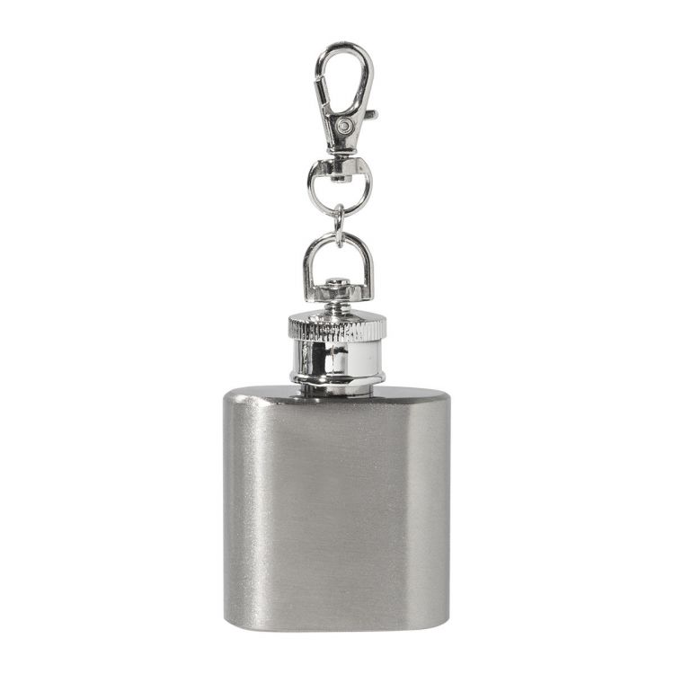 llavero con mini petaca de acero inox reciclado, con mosquetón. 30 ml