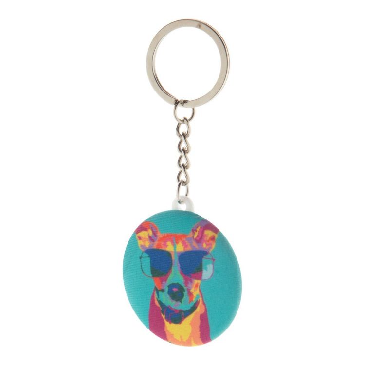 Llavero de botón pequeño con funda de microfibra RPET impresa a todo color. El precio incluye la impresión por sublimación. Cantidad mínima: 100 unidades