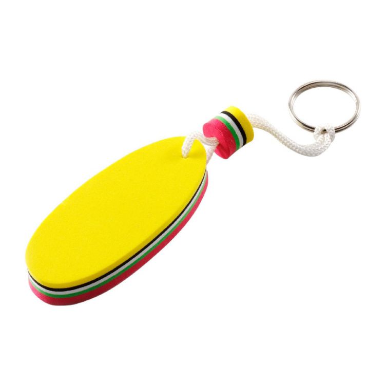 Llavero flotante de espuma EVA con cordón de nilón y anilla de acero.