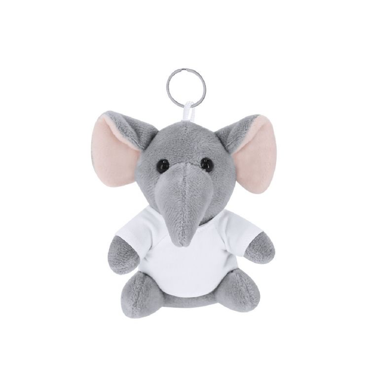 Llavero elefante de peluche con camiseta personalizable con anilla metálica para fácil transporte, ideal para sublimación. (color blanco)