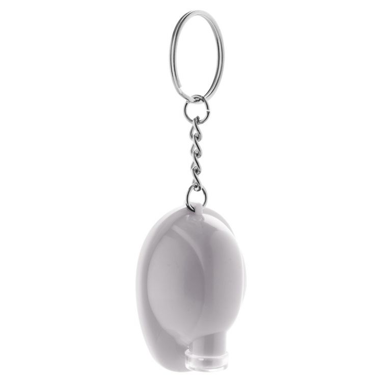 Llavero de plástico en forma de casco de seguridad con linterna LED. Con pila de botón.
