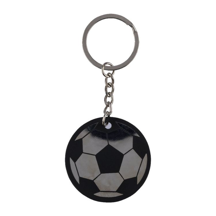 Llavero de acero inoxidable reciclado y caucho con anilla metálica y diseño de balón. Tras grabar a láser, el logo queda con un efecto espejo brillante. Presentación individual en un sobre de papel kraft.