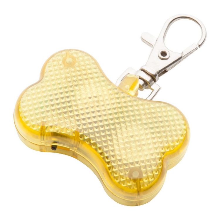 Luz de seguridad para mascotas con forma de hueso y luces LED intermitentes. Con pilas de botón.