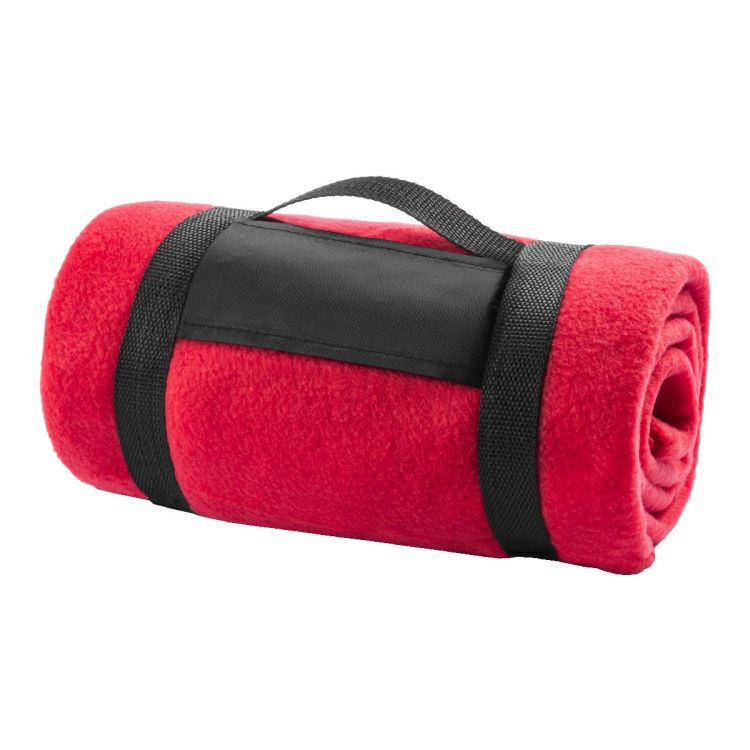 Manta polar con correa de transporte de velcro. 100% poliéster, 200 g/m².