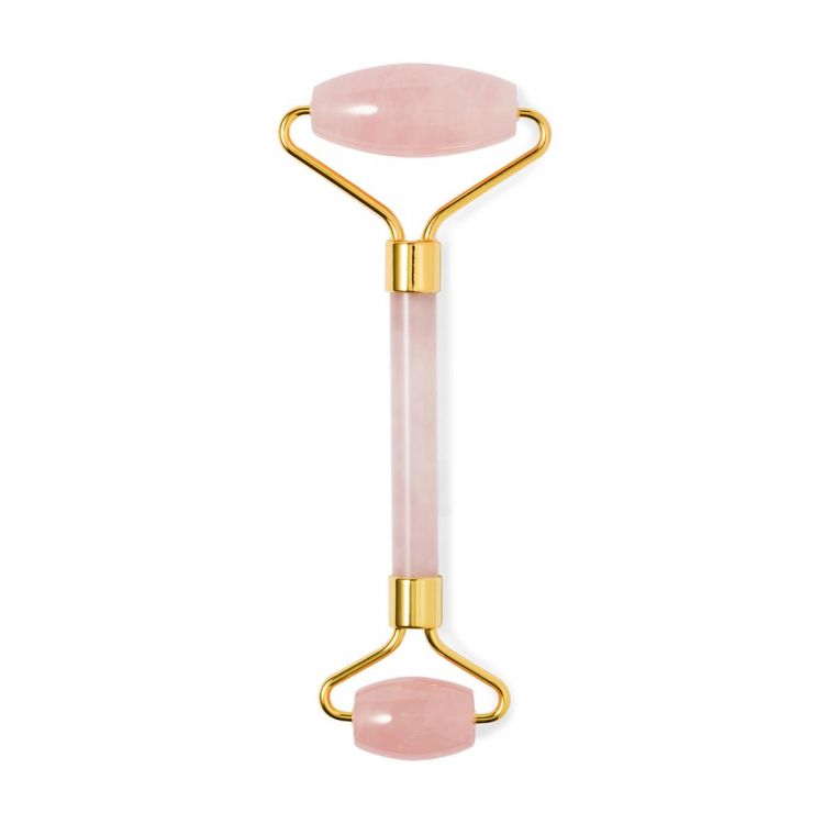 Rodillo facial de alta calidad fabricado en piedra jade rosa. Agradable masajeador de mano para el rostro, con cilindros faciales fabricados en suave piedra pulida. Ayuda a reducir la hinchazón y aporta brillo a la piel refinando los poros, eliminando toxinas y mejorando la elasticidad de la piel gracias a su efecto calmante. Presentado en una caja individual negra. (color natural)